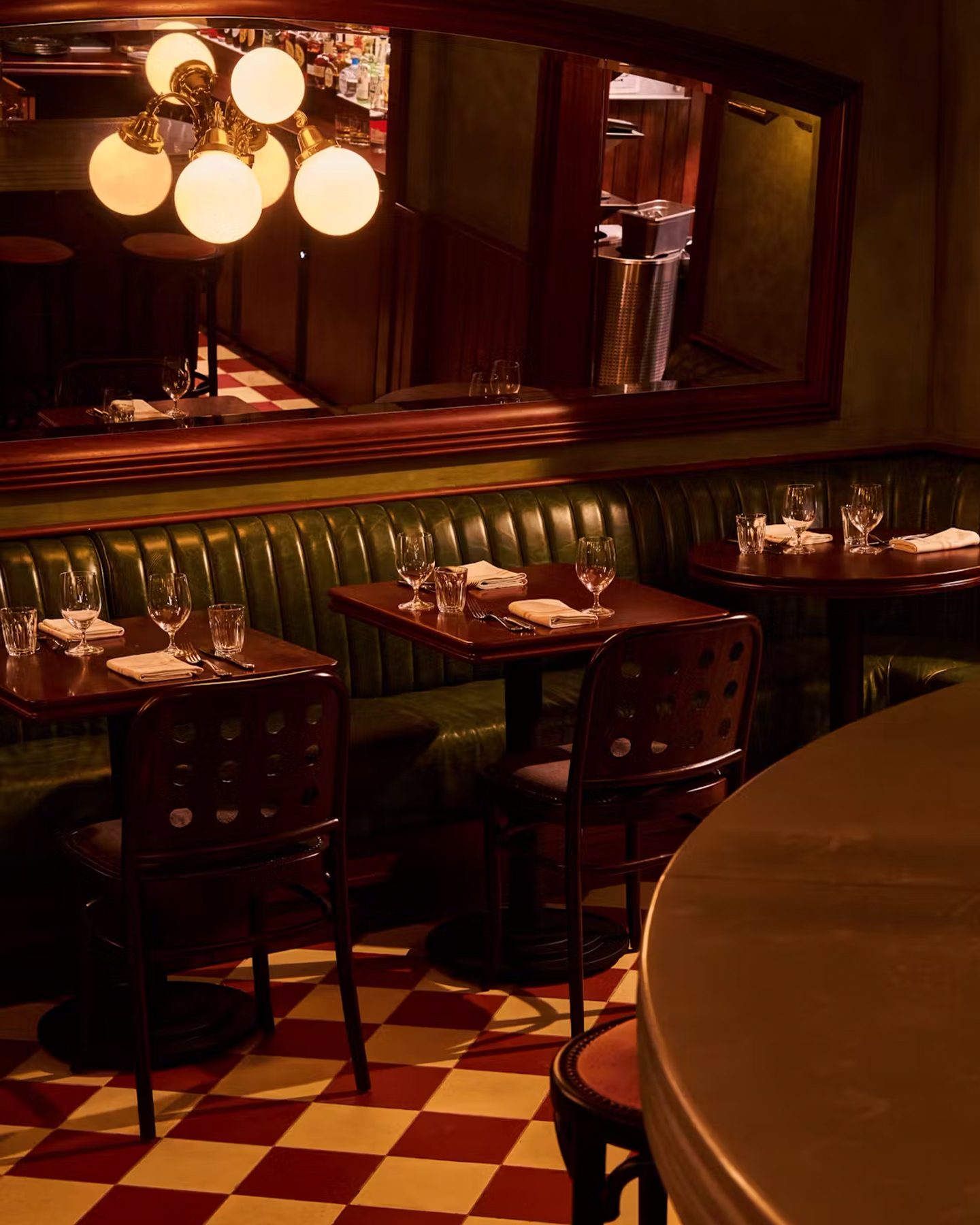 마치 영화 세트장 같은 이곳은 따뜻한 조명, 레더 의자, 체크무늬 바닥 등 빈티지한 무드로 꾸며져 공간 자체가 하나의 장면처럼 느껴집니다.