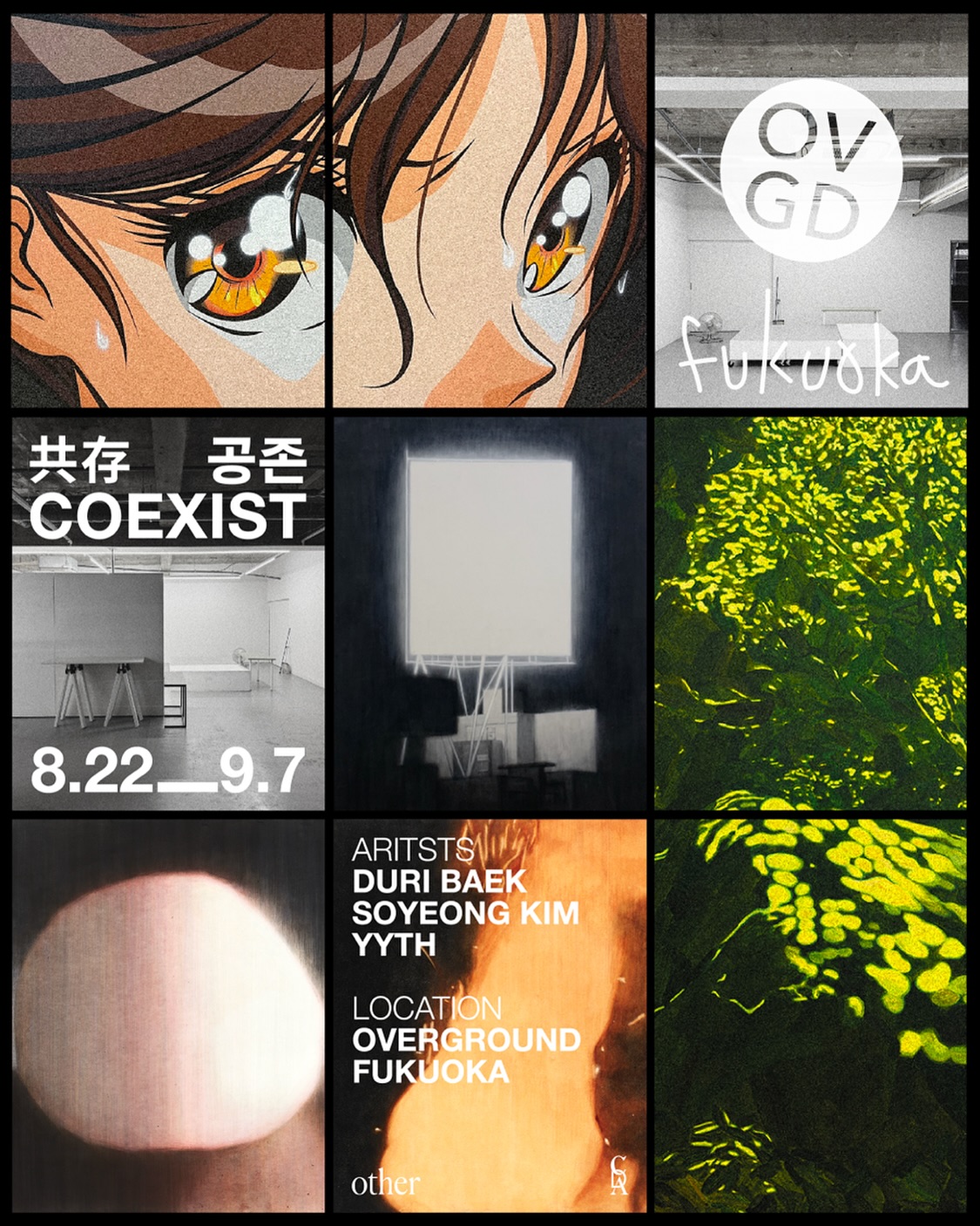 후쿠오카에 위치한 갤러리 OVERGROUND에서 서울을 기반으로 활동하는 세 명의 작가 김소영, 백두리, 이스의 전시, ‘COEXIST | 共存|공존’이 소개됩니다.