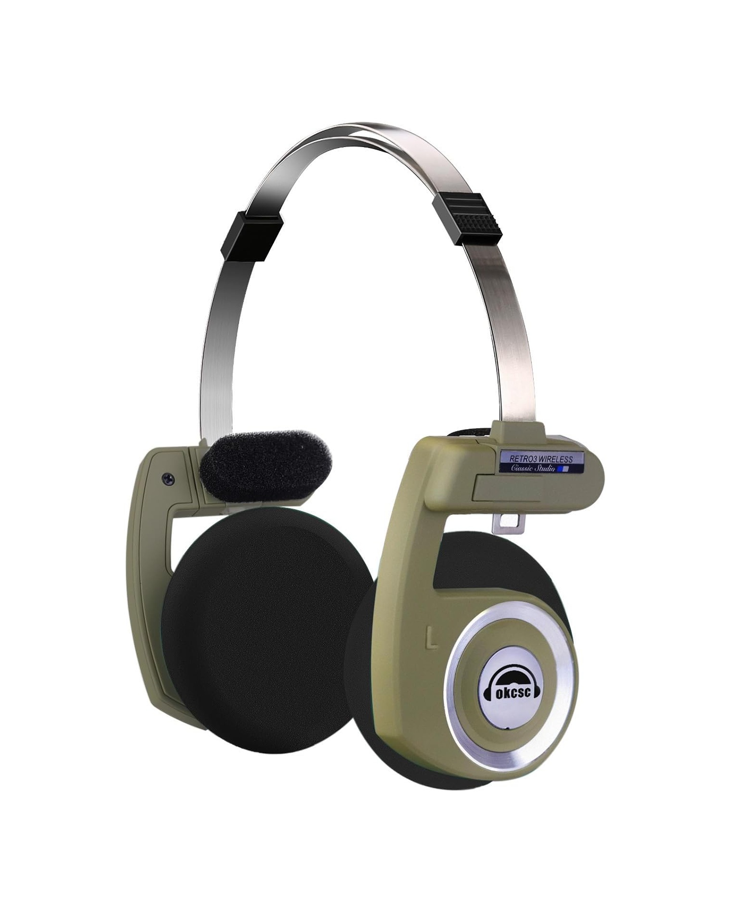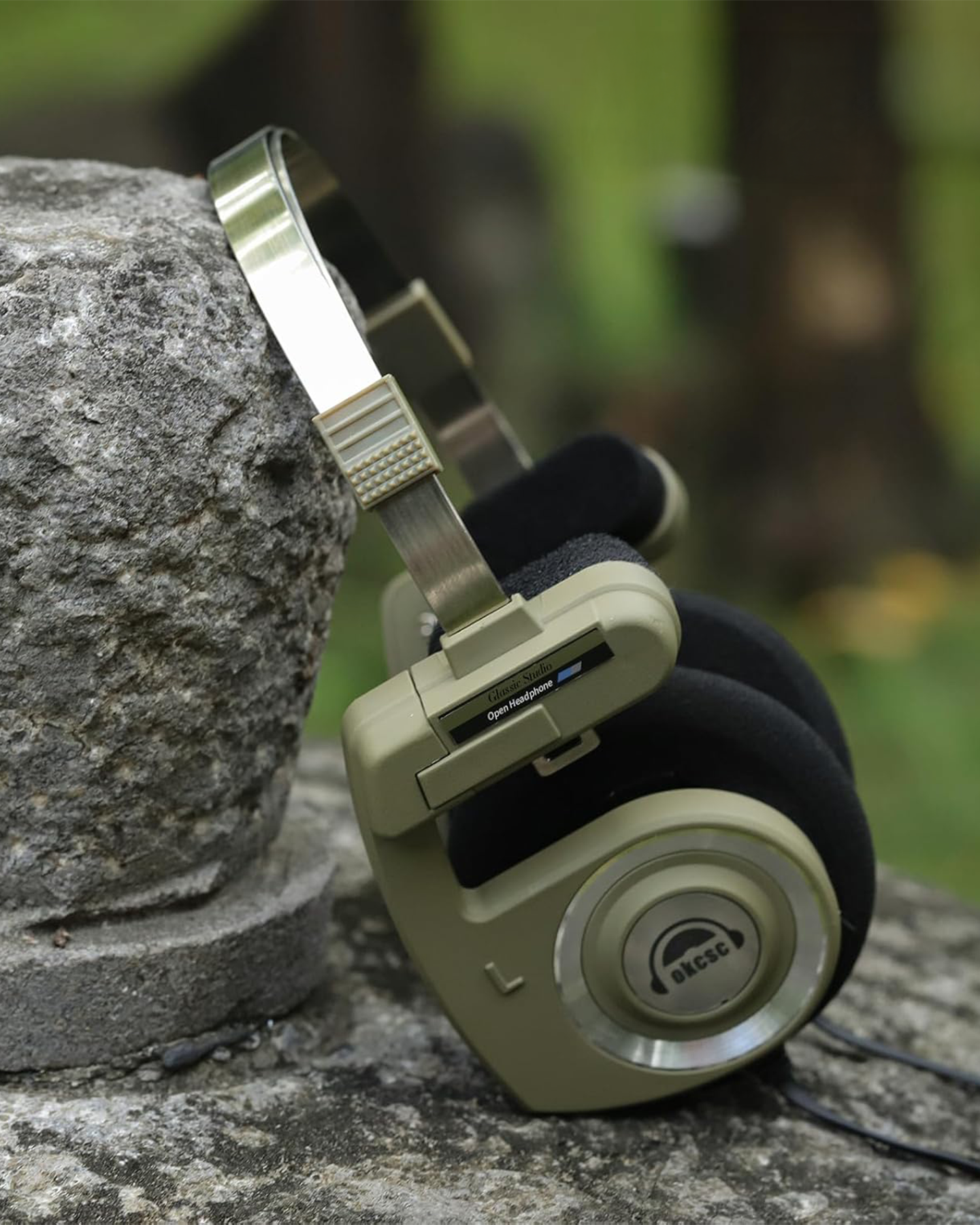 이는 OKCSC의 Retro3 wired headband 헤드폰으로 가격은 약 10만 원대. 레트로한 디자인과 구조적인 형태가 특징입니다.