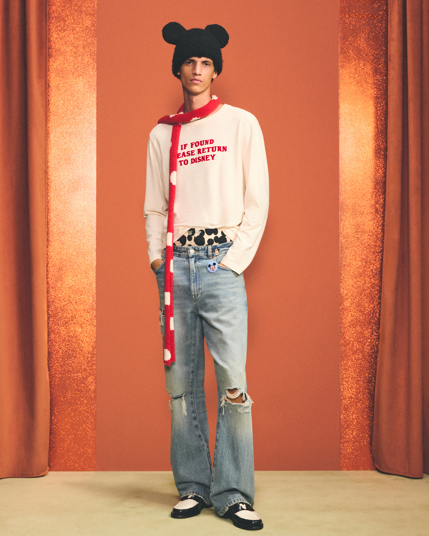 디즈니 특유의 생동감 넘치는 색감과 동시에 레트로 감성을 더해 타임리스 실루엣을 선보였죠. 과감한 버튼 장식과 경쾌한 컬러, 그리고 과장된 실루엣으로 즐거운 무드까지 가득.